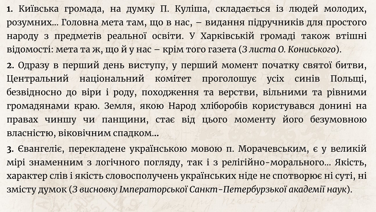 3. Ви вже знаєте, що в січні 1863 р. розгорілося національно-визвольне повстання поляків проти Російської імперії. Воно охопило землі Царства Польського, Литви, частково Білорусі та Правобережної України. До вересня 1864 р. повстання було придушене. Російський уряд жорстоко розправився з його учасниками: сотні поляків було страчено, тисячі вислано до Сибіру.