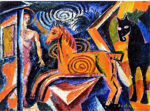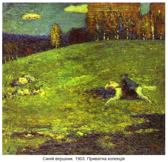 Історія створення. Картина "Синій вершник" не є конкретним твором Кандинського, а радше назвою об'єднання художників, яке він заснував разом з Францом Марком у 1911 році. Метою об'єднання було звільнення від академічних традицій та пошук нових форм вираження в мистецтві, зокрема через синтез різних видів мистецтва. Назву "Синій вершник" вони обрали, оскільки обидва любили синій колір, а Марк також захоплювався кіньми, і вони уявляли вершника як символ духовності та подолання матеріалізму,У грудні 1911 року Кандинський та Марк вийшли з "Нового мюнхенського художнього об'єднання" і створили власну групу, яку назвали "Синій вершник". Назва "Синій вершник" мала глибоке символічне значення. Синій колір асоціювався з духовністю, а вершник – зі Святим Георгієм, захисником духовних цінностей. "Синій вершник" став важливим етапом у розвитку модернізму, сприяючи пошукам нових форм вираження та абстракції в живописі.